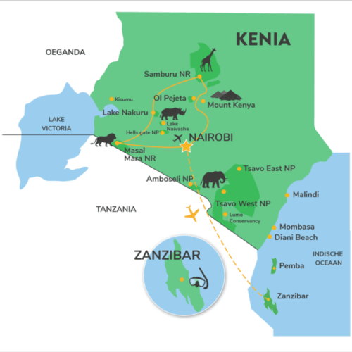 Dag 10, 11, 12+13: met het vliegtuig naar Zanzibar. Zanzibar is dé ideale afsluiter voor zonaanbidders die van de Swahili keuken en cultuur houden. Ook worden er overal op Zanzibar leuke tropische activiteiten georganiseerd waaronder snorkelen, duiken, kruidentours tot een bezoek aan het historische Stone Town toe.