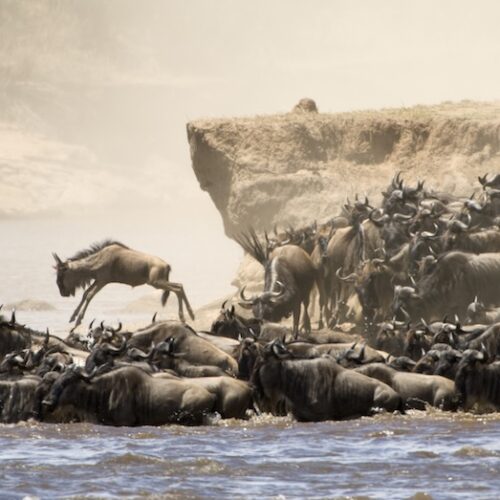 Dag 6,7+8: Naar Het Masai Mara Natuurreservaat. Het Masai Mara wildreservaat behoort tot de meest bekende en wildrijke nationale parken van het Afrikaanse continent. De Masai Mara wordt in tweeën gedeeld door de beroemde Mara rivier waar 2.000.000 migrerende wildebeesten en zebra’s zich op spectaculaire wijze door heen banen. Met optioneel een ballonsafari!